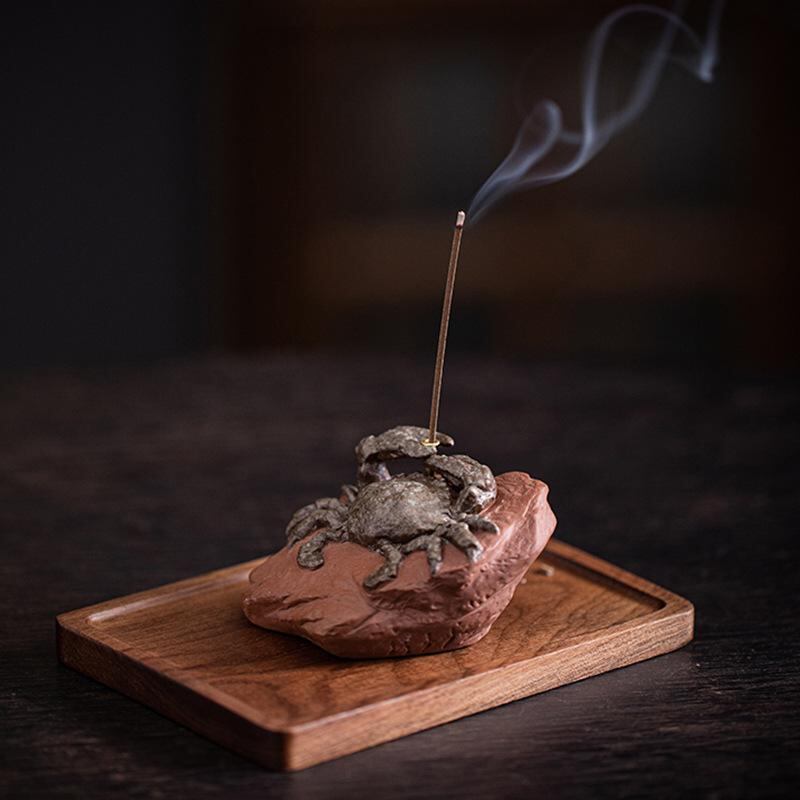 お香立て 紫砂 カニモチーフ ミニチュア 香炉 室内用 卓上 線香立て 茶道 縁起物 ラッキーアイテム 中華風 アジアンテイスト おしゃれ インテリア オブジェ ギフト プレゼント