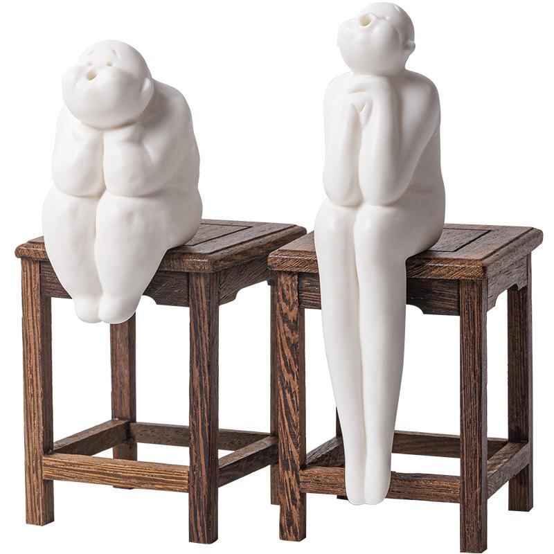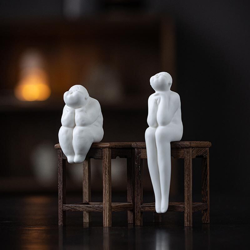 置き物 陶器製 ハンドメイド 人物像 オブジェ ユニークデザイン 愛らしい表情 禅風 和モダン インテリア 卓上 リビング 書斎 オフィス 装飾品 飾り