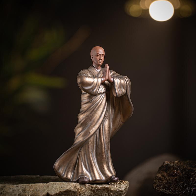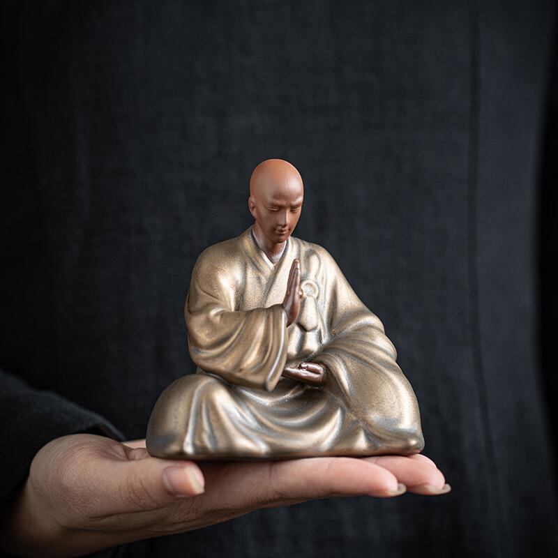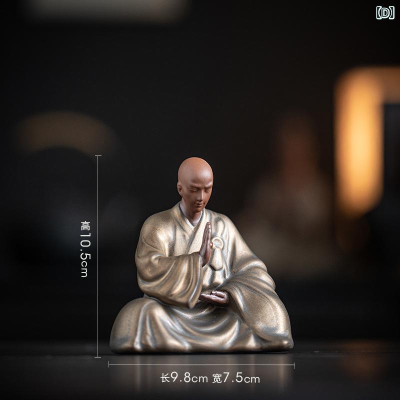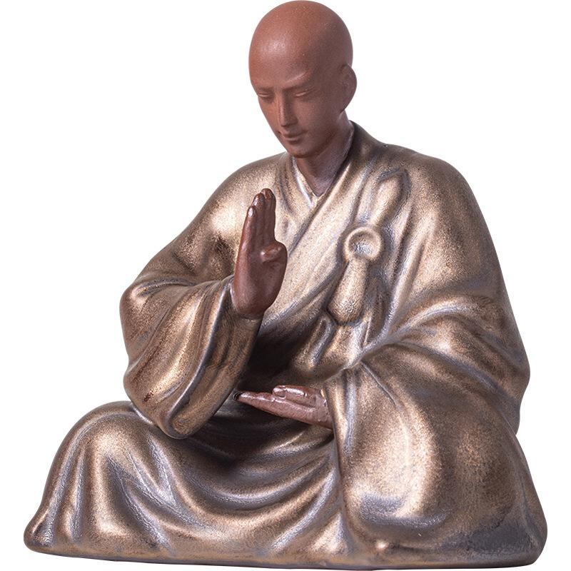 置物 小坊主 陶器 中国風 レトロ 禅意 瞑想 癒し 室内装飾 インテリア 飾り棚 リビング 和室 茶室 書斎 玄関 庭園 ガーデン オブジェ 手作り 精巧 アート