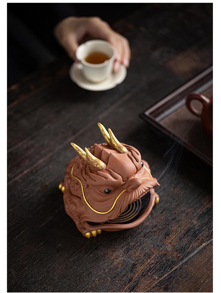 お香立て 金蟾 縁起物 金運アップ 中国風 禅風 茶道 家庭用 室内 卓上 置物 紫砂陶器製 渦巻き線香用 蓋付き 香皿 アロマ 聞香 瞑想 リラックス