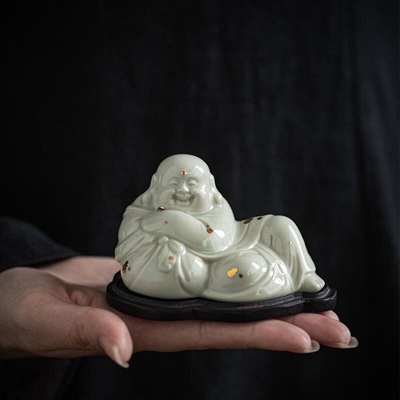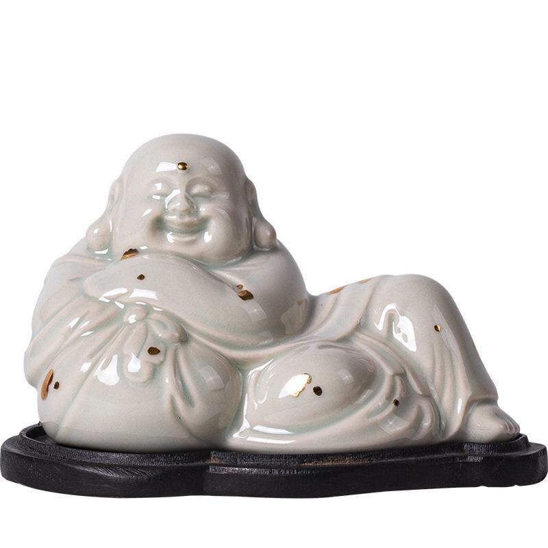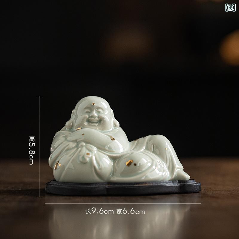 置物 和モダン 禅スタイル 弥勒仏 布袋様 陶器製 レトロ 笑い仏 ペーパーウェイト 文鎮 筆置き 書道用品 書斎 デスク インテリア オブジェ 飾り