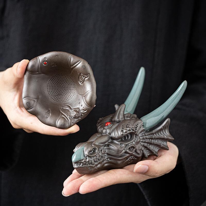 茶こし 龍 陶器製 ユニーク 茶漉しスタンド 茶葉フィルター 茶器 茶寵 置物 茶盤飾り 開運 縁起物 中華風 インテリア オブジェ ギフト プレゼント