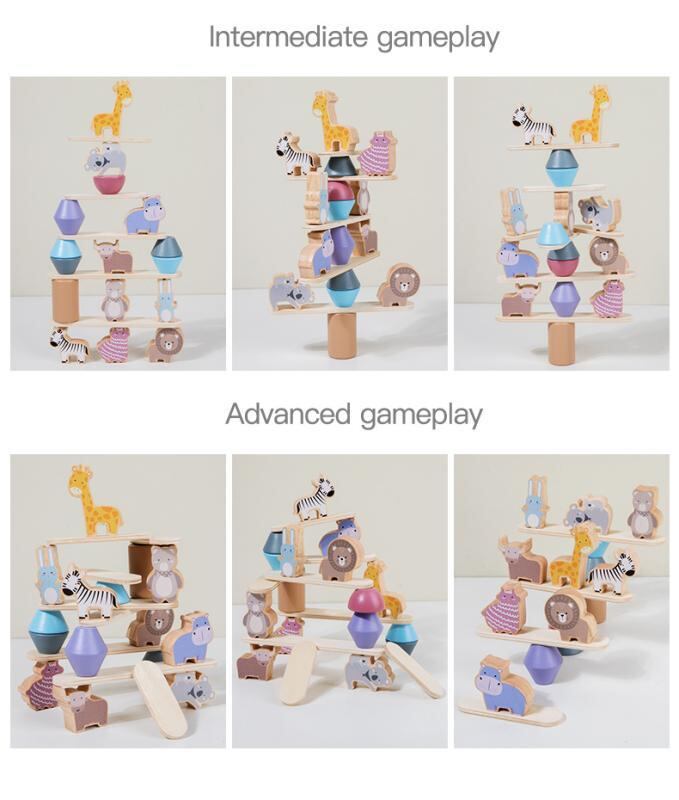 おもちゃ 子供 キッズ 知育玩具 ベビー 木製 無垢材 天然木 動物 積み重ね バランスゲーム スタッキングブロック 早期教育 思考力 集中力 手先 バランス感覚 脳トレ ギフト