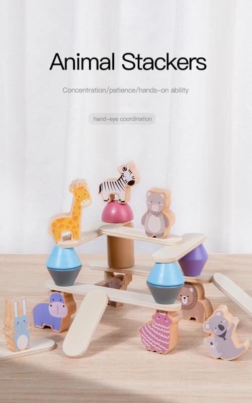 おもちゃ 子供 キッズ 知育玩具 ベビー 木製 無垢材 天然木 動物 積み重ね バランスゲーム スタッキングブロック 早期教育 思考力 集中力 手先 バランス感覚 脳トレ ギフト | cybercart