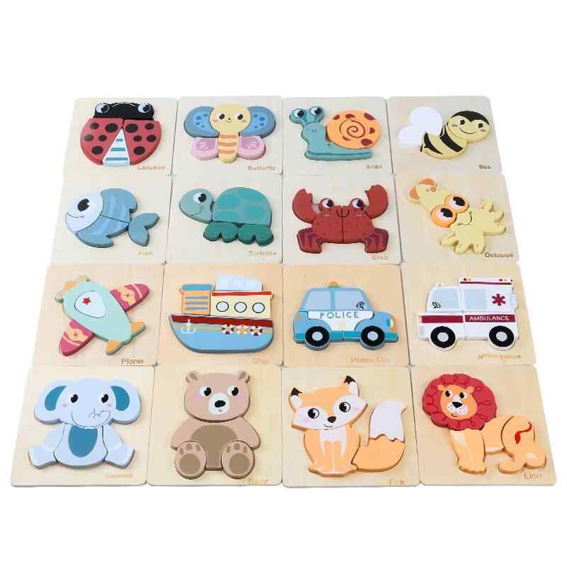 パズル 子供 キッズ ベビー 木製 ウッド 立体 3D 動物 アニマル キャラクター 4ピースセット 知育玩具 早期教育 学習玩具 集中力 思考力 創造力 誕生日プレゼント 3歳 4歳 5歳 6歳 男の子 女の子
