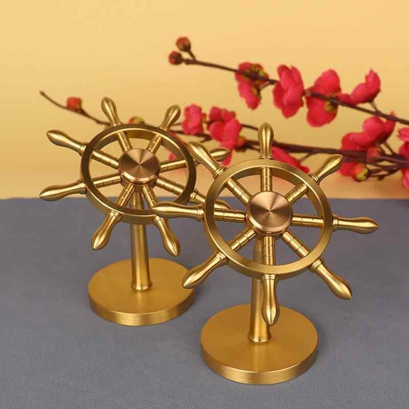 置物 真鍮製 船舵 羅針盤 回転式 航海士モチーフ ストレス解消 リラックス 癒し 開運 ラッキーアイテム デスク インテリア 卓上飾り ユニークデザイン 重厚感