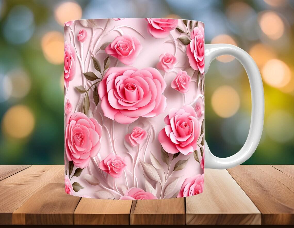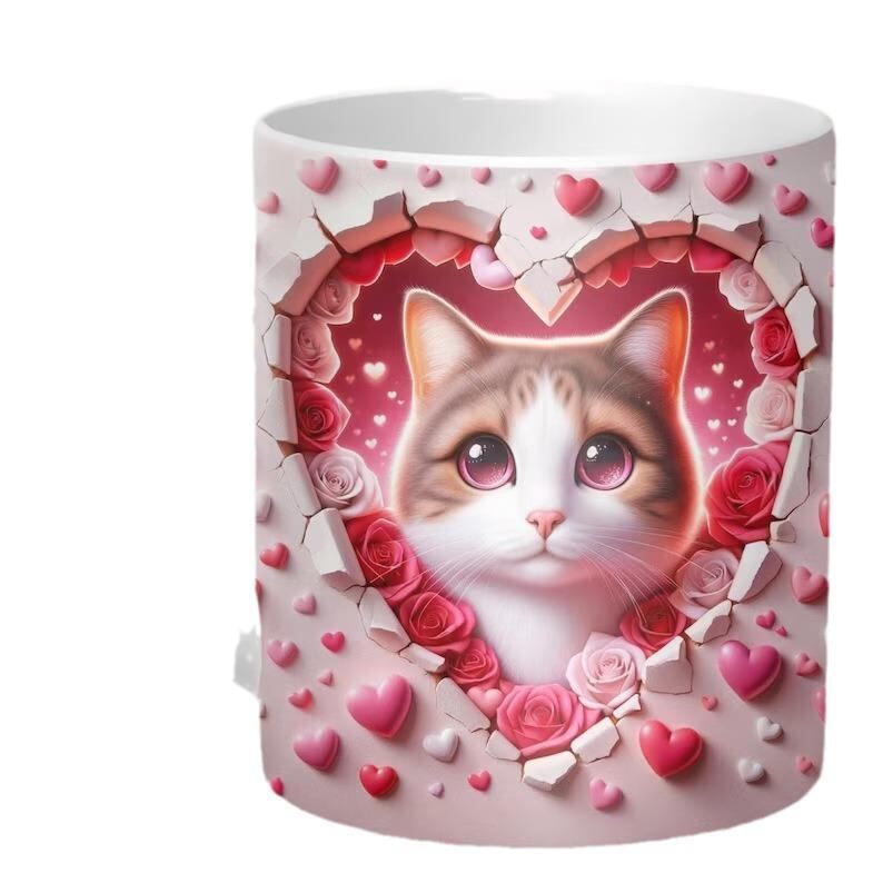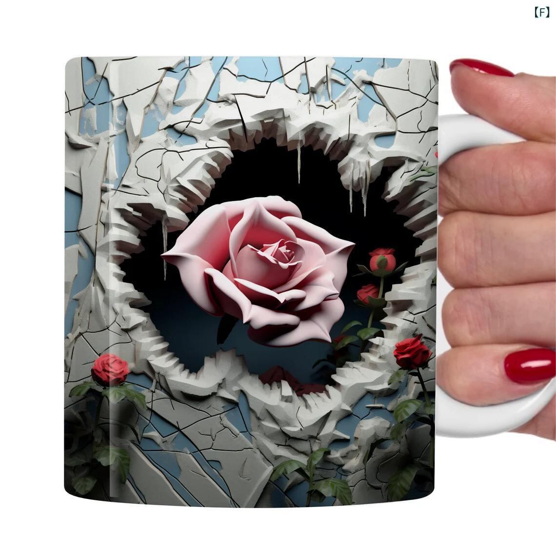 マグカップ 3Dローズ バレンタイン ハート 猫 陶器 セラミック製 コーヒー ティーカップ 耐熱 電子レンジ対応 取っ手付き おしゃれ かわいい モダン シンプル オフィス 自宅用 プレゼント ギフト 丸型 300ml 400ml