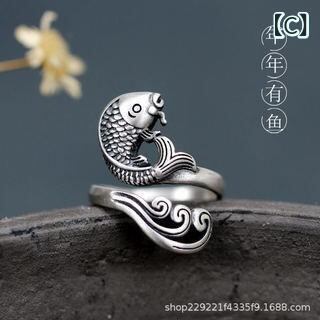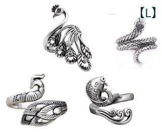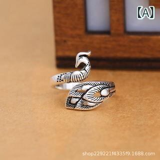 リング 指輪 男女兼用 ユニセックス レトロ アンティーク ヴィンテージ 孔雀 クジャク 錦鯉 コイ 鳳凰 フェニックス 猫 ネコ 蛇 ヘビ 虎 トラ 狐 キツネ アニマル 動物モチーフ 縁起物 シルバー 銀色 メッキ フリーサイズ サイズ調整可能 オー