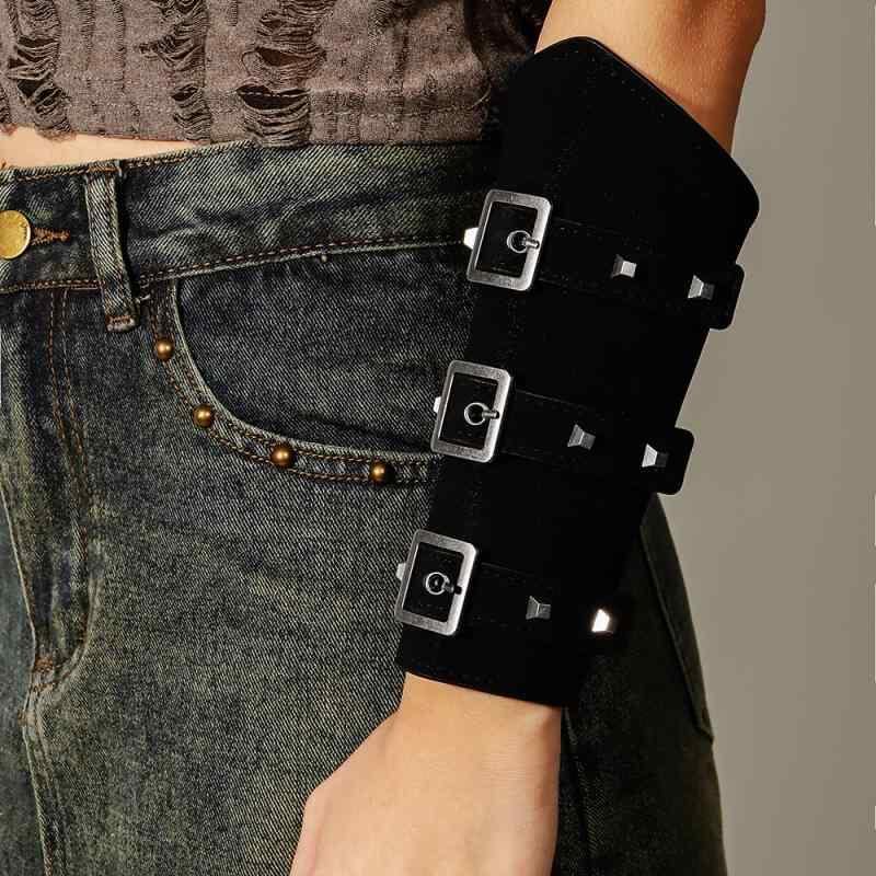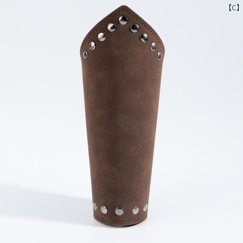 アームガード ガントレット 騎士 ナイト 中世 ファンタジー コスプレ レトロ ヴィンテージ 腕当て 鹿革 PUレザー 金具装飾 ブラック レッドブラウン オレンジ