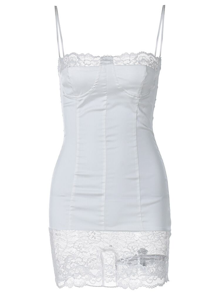 ワンピース レディース セクシー レース切替 キャミソール タイト ウエストマーク ボディコン ミニ丈 ショート丈 無地 ポリエステル 伸縮性 セクシーギャル 黒 白