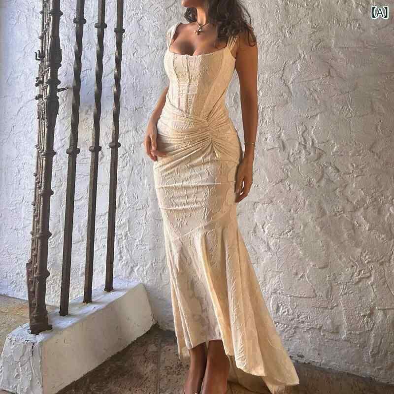 ワンピース レディース レース マーメイド 魚骨入り キャミソール Vネック タイト スリム ヒップハグ ミディ丈 エレガント セクシー フレンチスタイル ポリエステル 裏地付き パーティー お呼ばれ ドレス