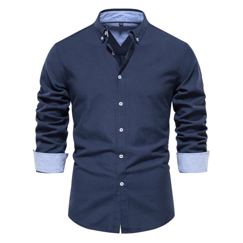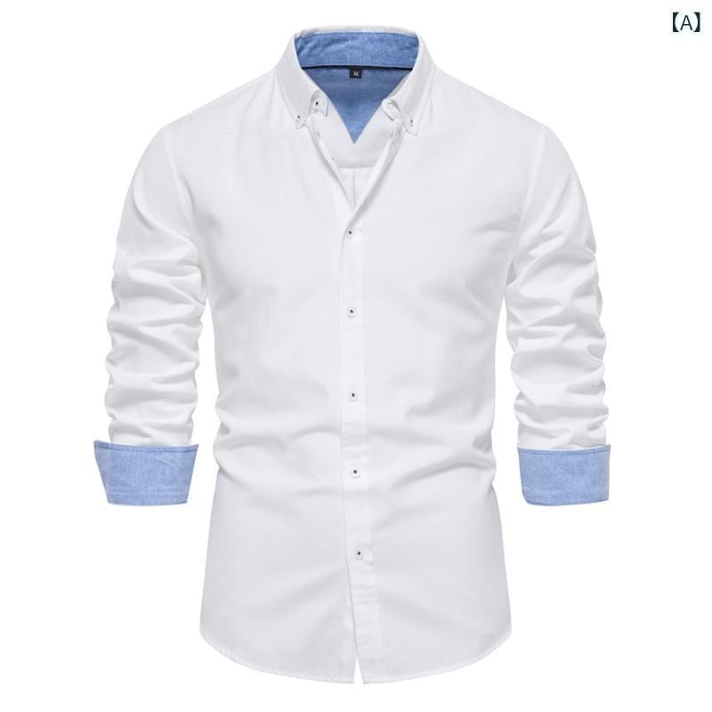 シャツ メンズ スリムフィット 長袖 無地 トップス 形態安定 イージーケア 吸汗速乾 通気性 綿 ポリエステル混紡 コットンブレンド カジュアル 普段使い 着回し 襟付き レギュラーカラー 春秋 ホワイト グレー ネイビー
