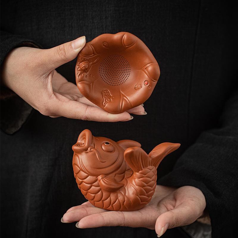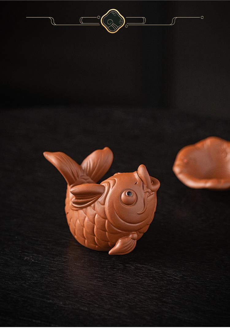 茶こし 紫砂陶器 錦鯉 茶器飾り 縁起物 開運 中華風 一体型 茶葉フィルター 茶葉カス取り 功夫茶道 茶器 茶道具