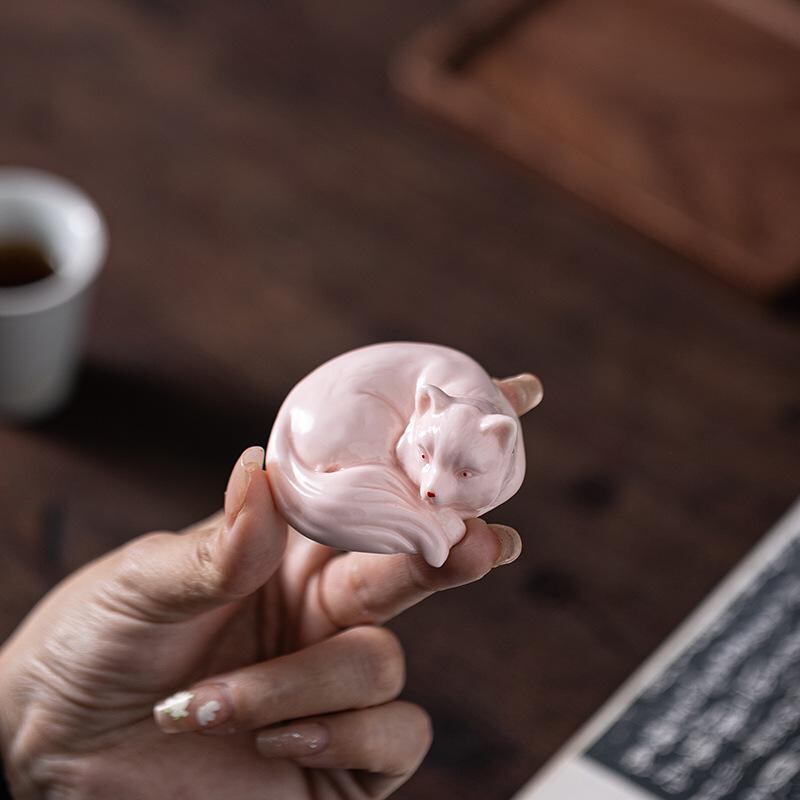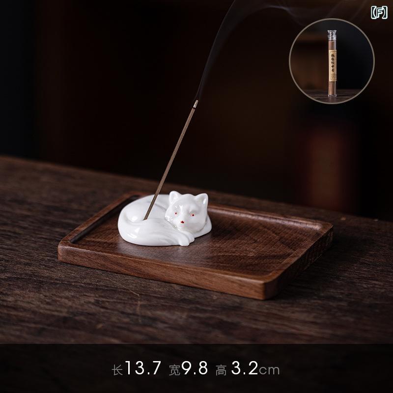 お香立て 子ギツネ 陶器製 室内 家庭用 おしゃれ かわいい 禅風 和風 レトロ 香立て 香皿 インセンスホルダー 白檀 沈香 アロマ 癒やしグッズ 置物