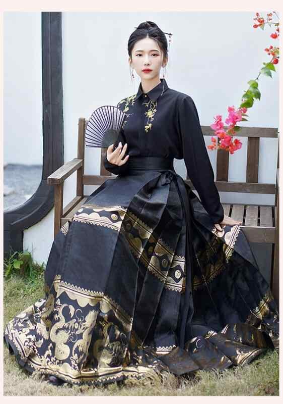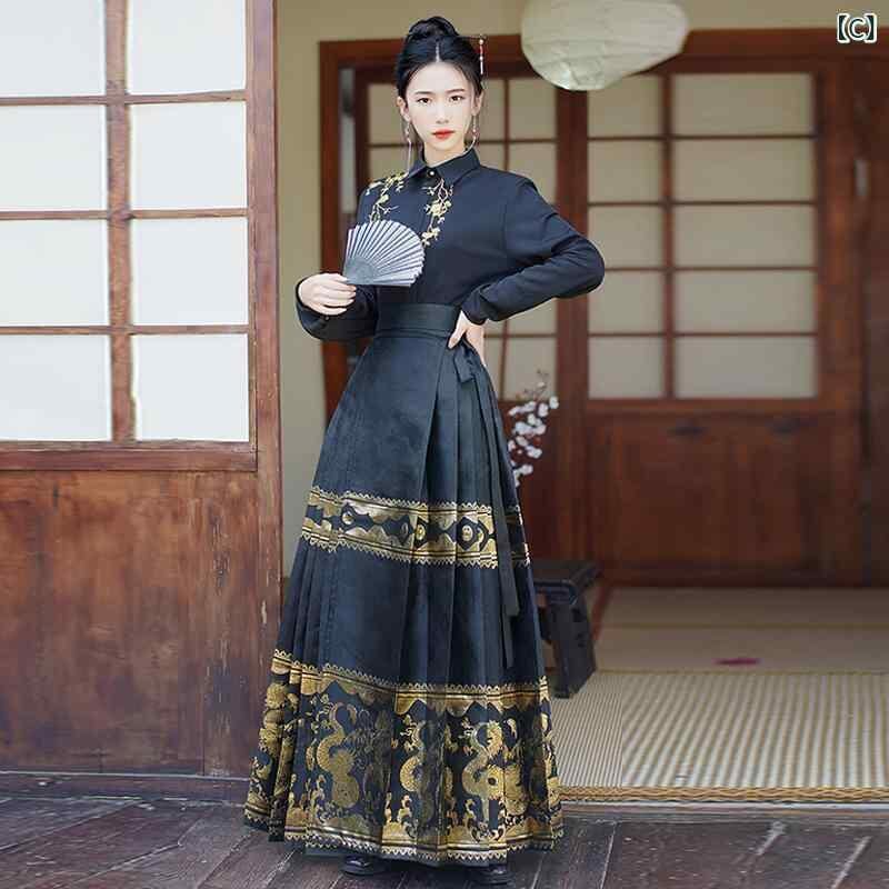 漢服 レディース モダンチャイニーズスタイル 凝った刺繍 金糸織り 金龍 馬面スカート 明朝様式トップス セットアップ エレガント 上品な プリーツスカート 中国伝統衣装 イベント衣装 | cybercart