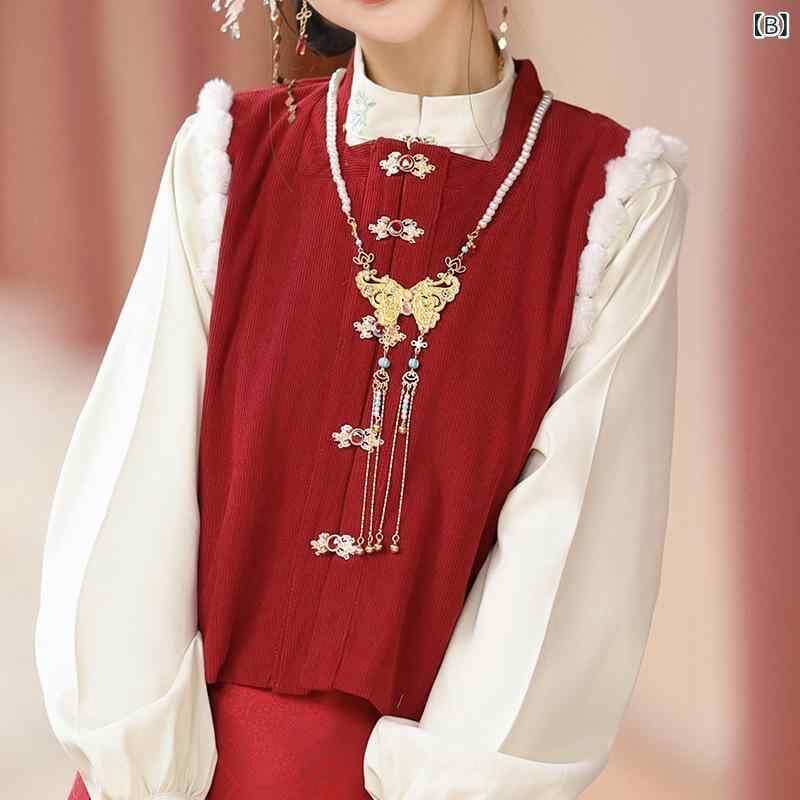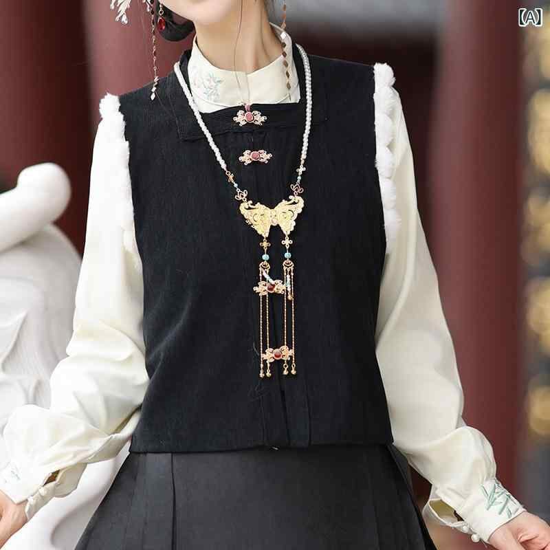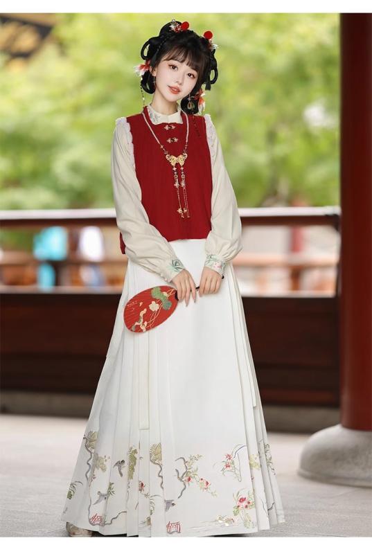 漢服 レディース 明朝様式 新中華風 シャツ ブラウス ベスト ジレ 馬面スカート クチナシ柄 花柄 春夏 普段使い デイリー