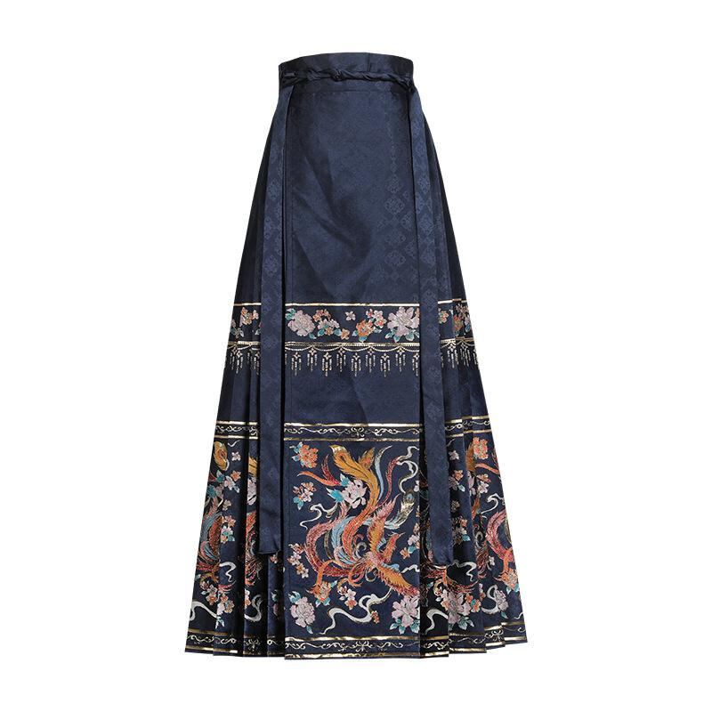 漢服 レディース 明制 馬面スカート セットアップ 織金 錦織り 花柄刺繍 中華風 結婚式 披露宴 成人式 婚礼衣装 コットン ポリエステル 赤 青 黒