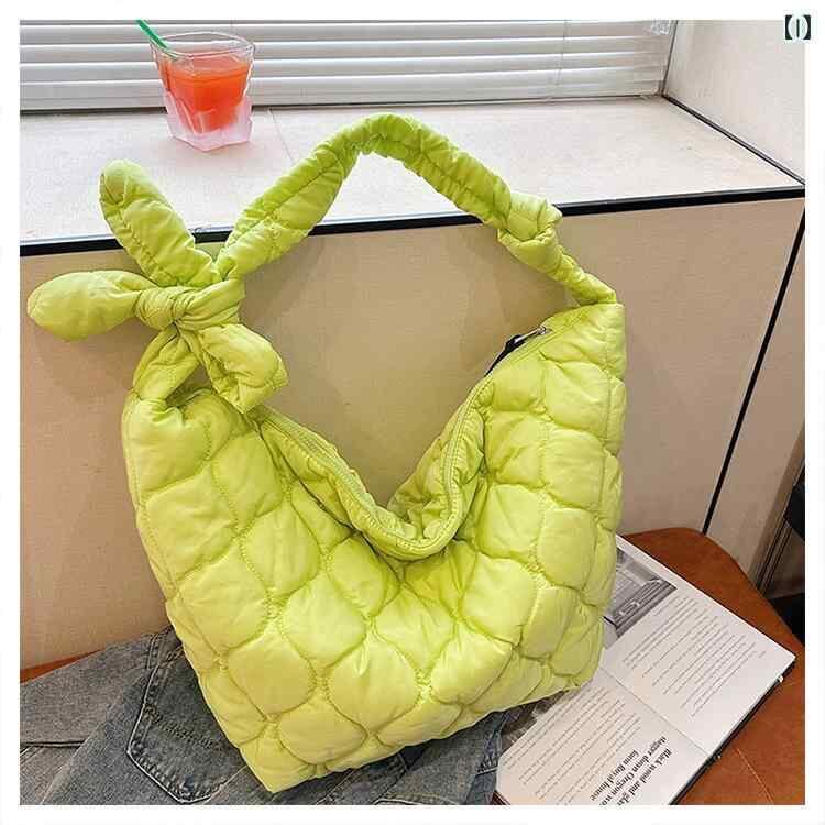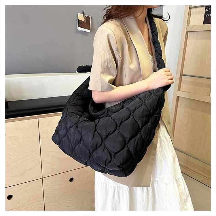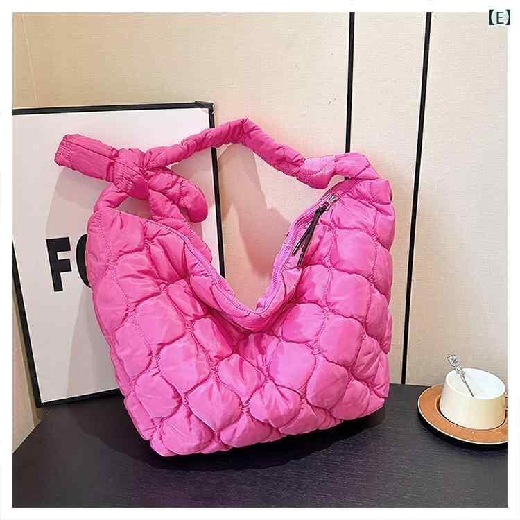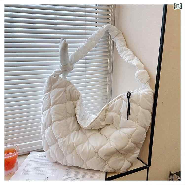 バッグ クラウドバッグ トートバッグ ショルダーバッグ 大容量 ナイロン キルティング 斜め掛け 肩掛け ファスナー付き 横長スクエア型 ソフト 普段使い デイリーユース 豊富なカラーバリエーション