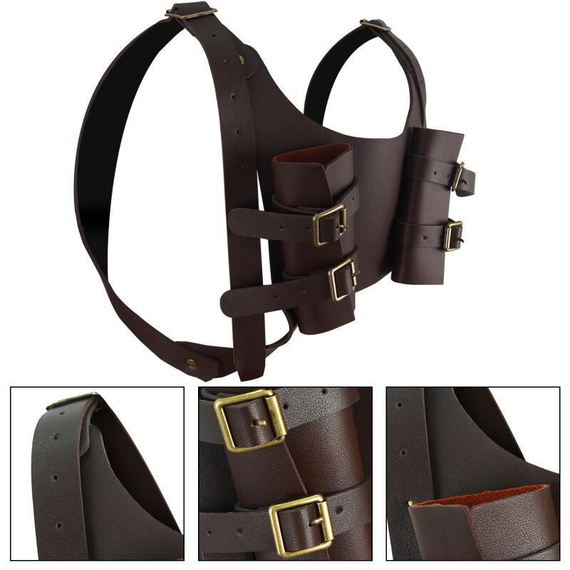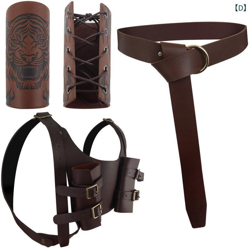 コスプレアクセサリー 男性用 中世 ヴァイキング 戦士 レザー ベルト 剣シース 腕当て ヴィンテージ レトロ 舞台 演劇 小道具 ハロウィン 仮装 イベント 茶色