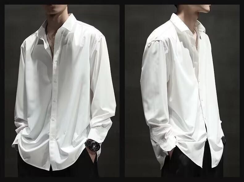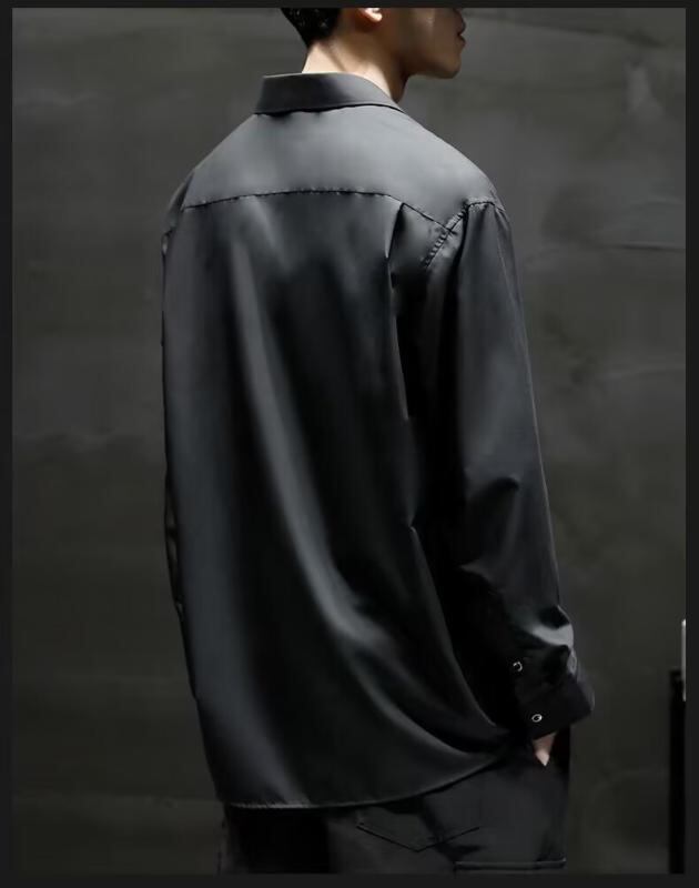 シャツ メンズ 接触冷感 長袖 開襟 薄手 ゆったり ビッグシルエット 大きいサイズ 無地 ポケット付き ノーアイロン 普段使い 羽織り 高級感 ポリエステル素材 ブラック 黒
