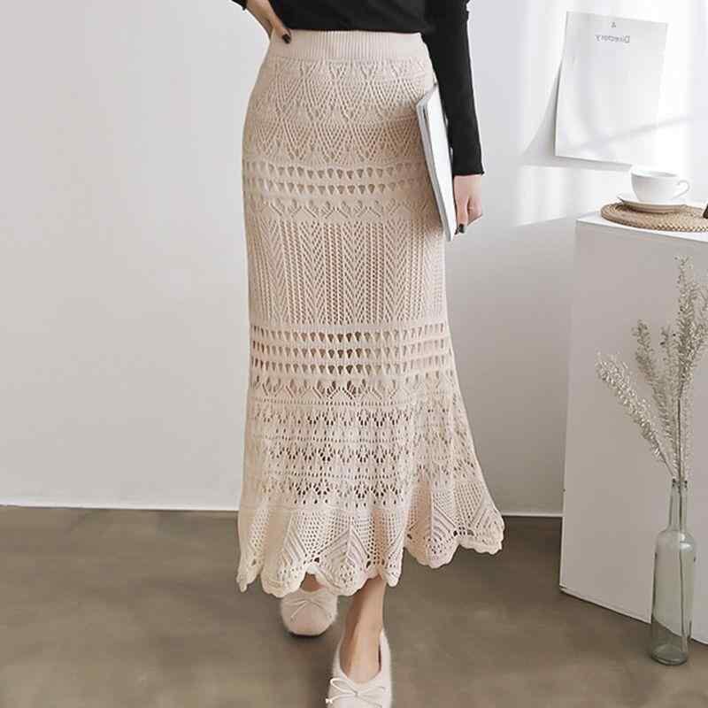 スカート レディース 大きいサイズ 夏 ハイウエスト マーメイド タイト ミモレ丈 ニット レース 透かし編み ポリエステル 快適 カジュアル