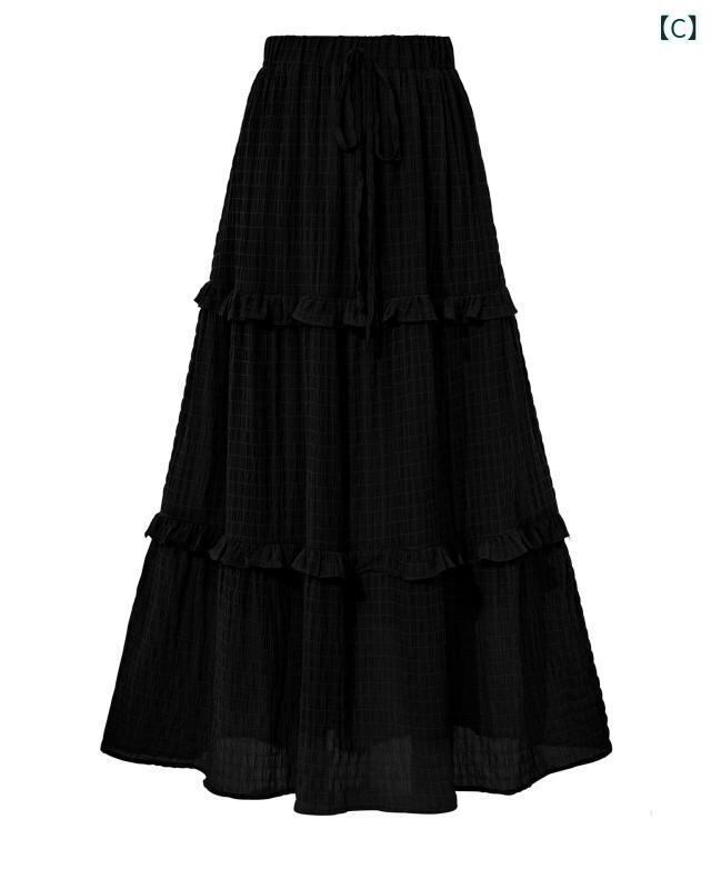 プリーツスカート レディース 大きいサイズ Aライン ロング丈 きれいめ 通勤スタイル ゆったり 体型カバー ウエストゴム仕様 ポリエステル チェック柄 微ストレッチ 伸縮性 ポケット付き