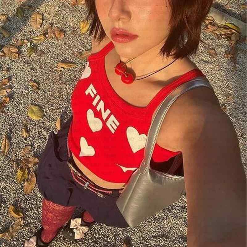 キャミソール レディース タンクトップ ノースリーブ トップス 風 おしゃれ セクシー フェミニン 個性的 ハート型 アルファベット プリント