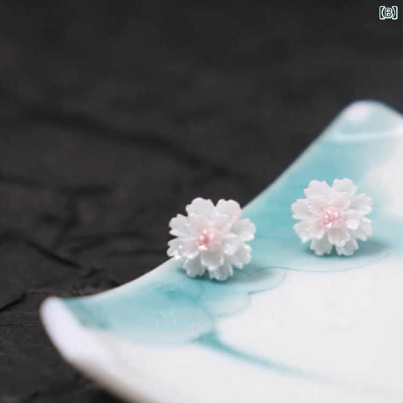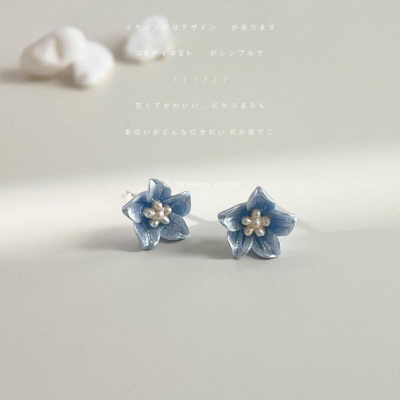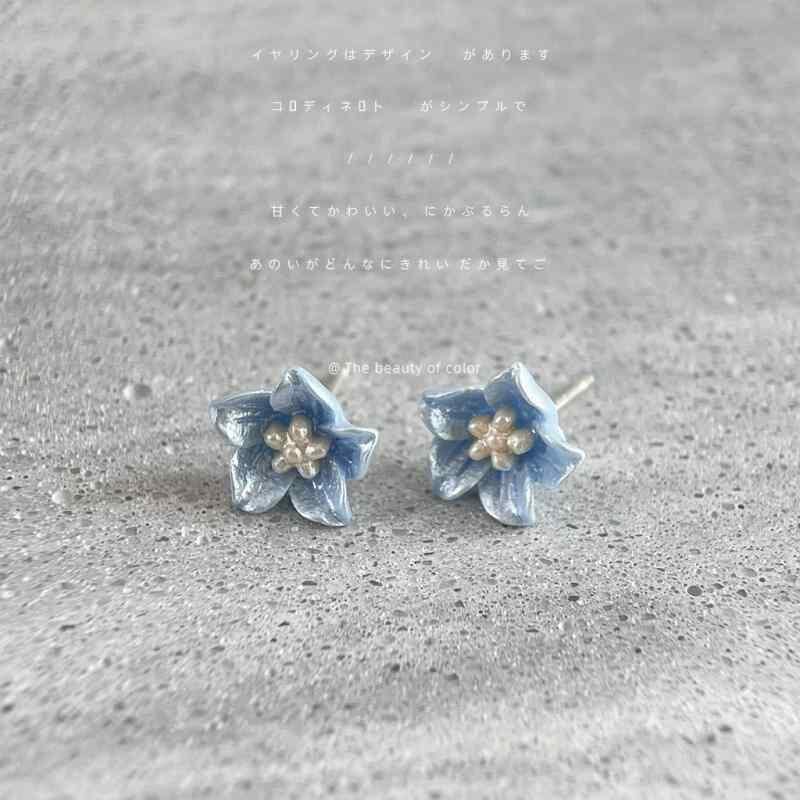 ピアス レディース 山茶花 小花モチーフ 樹脂製 金属製 スタッドピアス クラインブルー ピンク系 メッキ加工 デイリーユース スウィート かわいい フレッシュ 上品