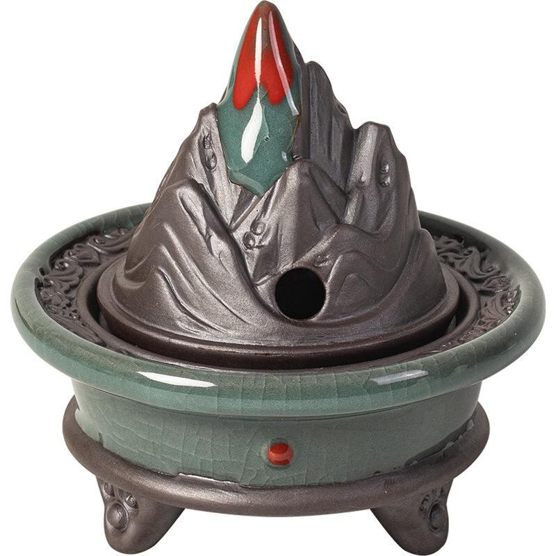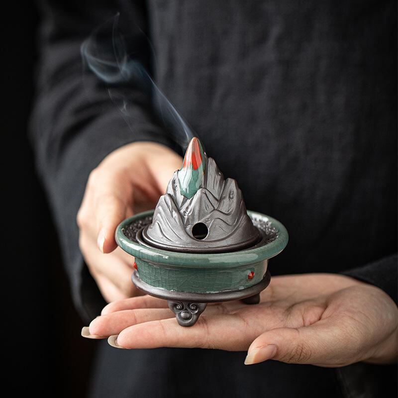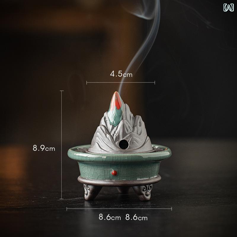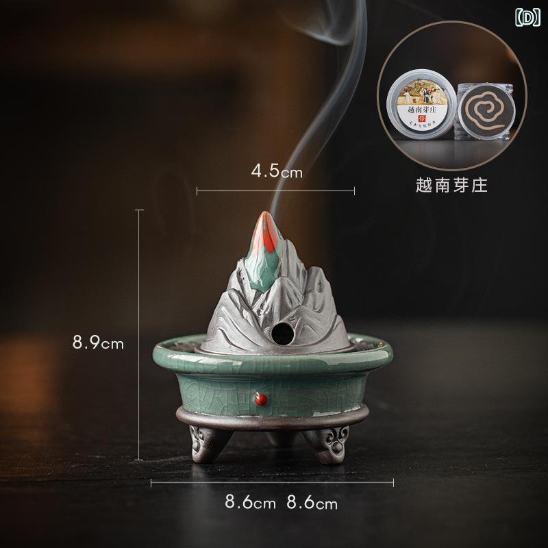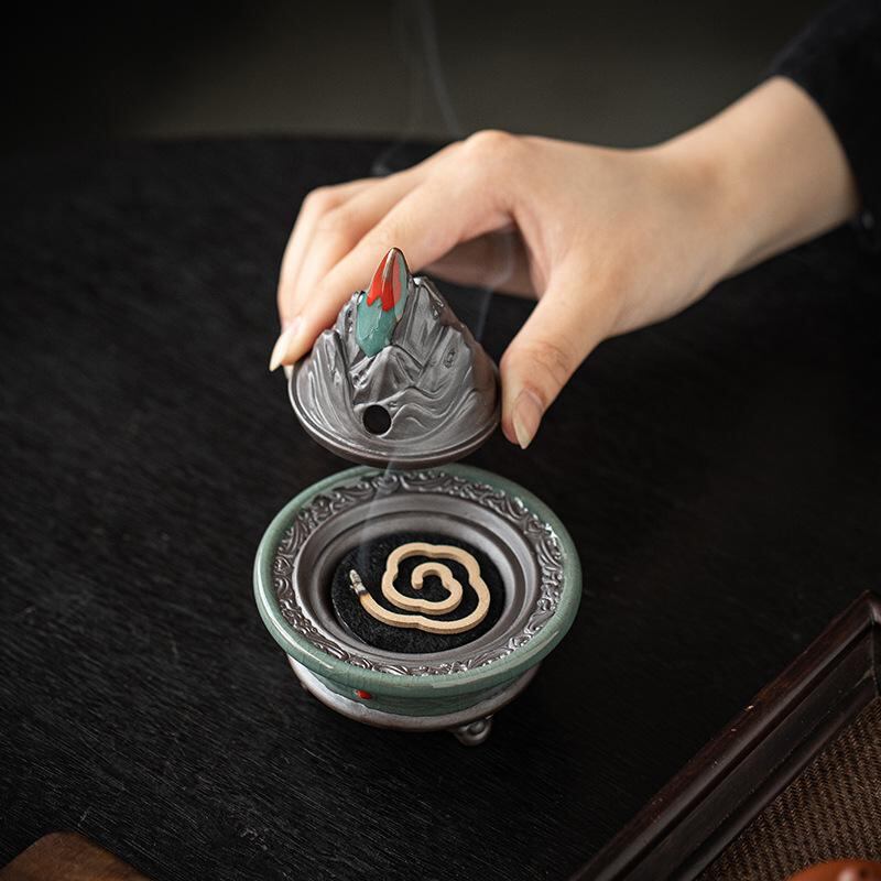 香炉 三本足 博山炉 陶器製 陶磁器 小型 ミニサイズ 中国風 禅風 和風 レトロ アンティーク調 家庭用 室内 リビング 玄関 和室 茶道 茶の湯 瞑想 癒やし 渦巻き線香 盤香 置物 インテリア オブジェ 飾り