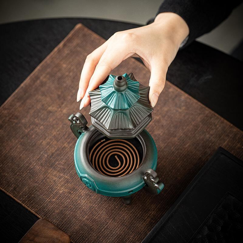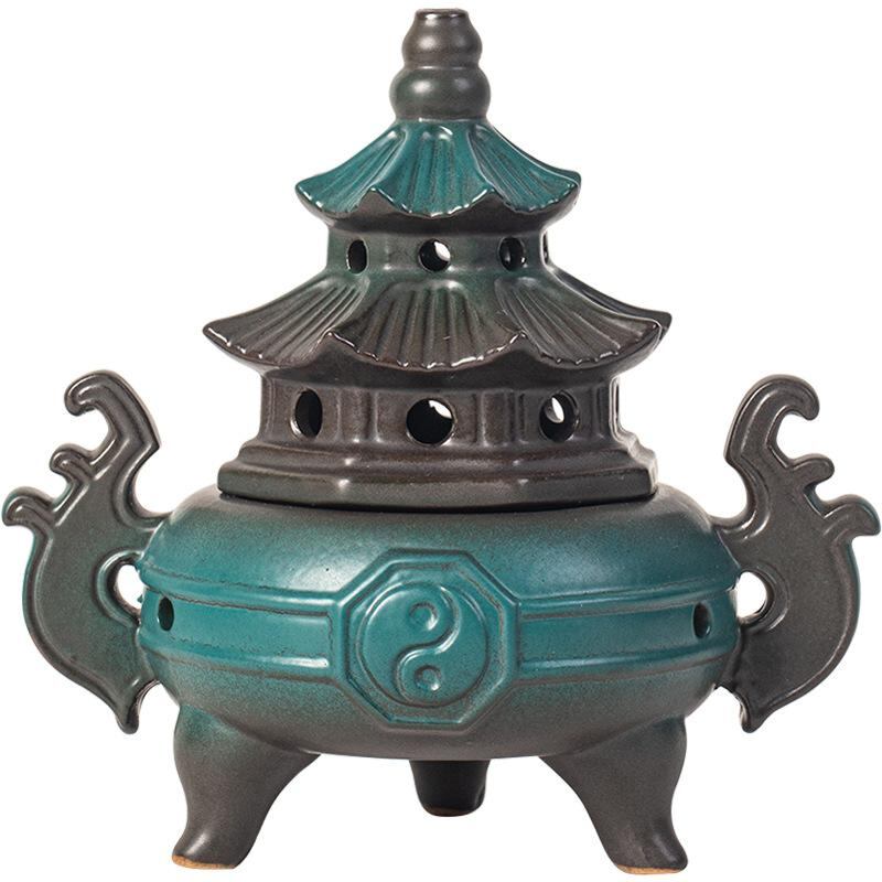 香炉 太極八卦 陶器製 渦巻き型 家庭用 室内用 禅 瞑想 癒やし リラックス効果 古風 和風 レトロ アンティーク調 書斎 茶室 リビング用 置物 オブジェ 撮影小道具 インテリア雑貨 飾り物