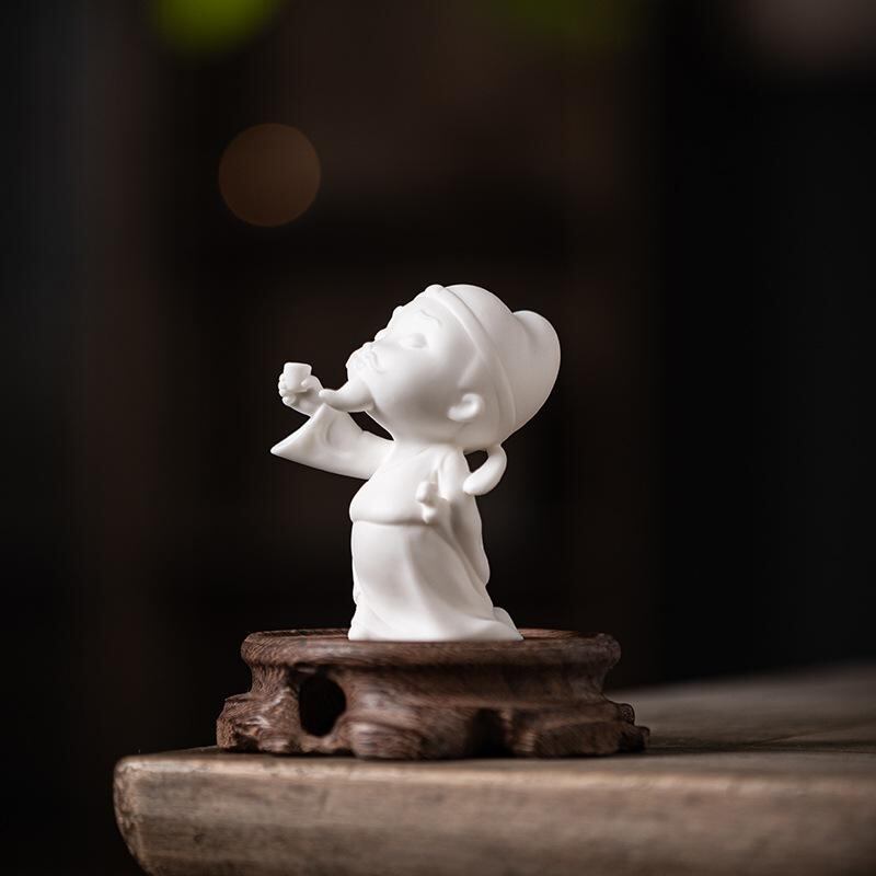 置物 かわいい ミニ李白 陶器製 中国風 歴史人物像 精巧 伝統工芸品 書斎 茶室 リビング 飾り棚 デスク 卓上 インテリア オブジェ 装飾品