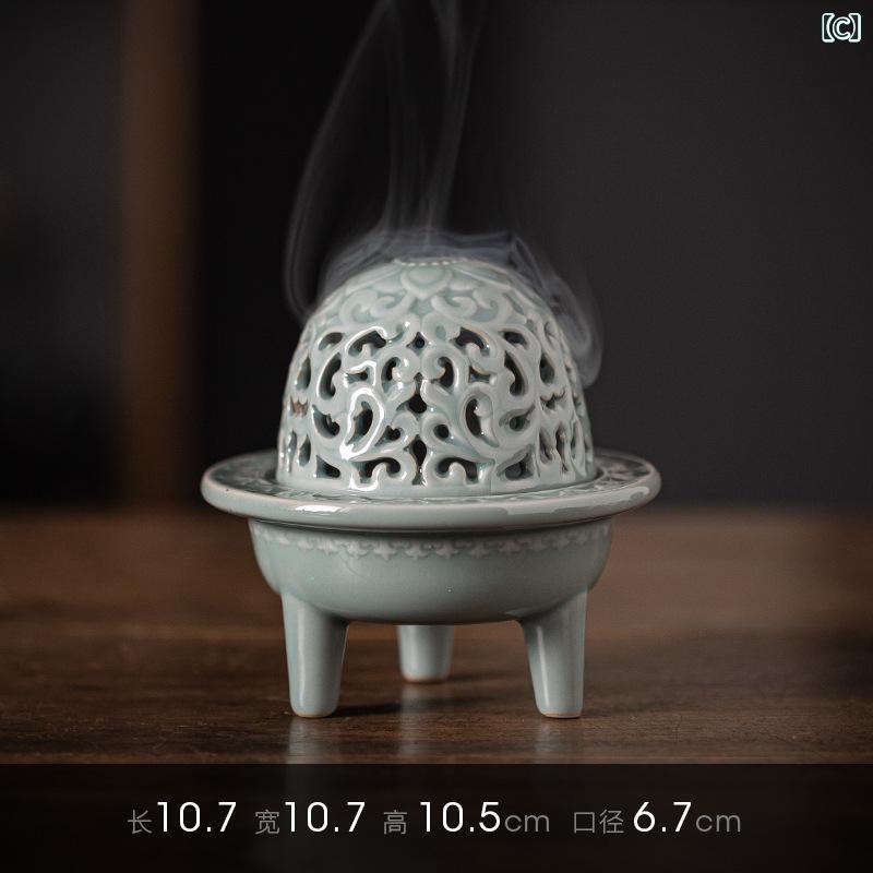 香炉 中国古典風 陶器 三本足 渦巻き線香用 皿型 家庭用 室内 白檀 沈香 お香立て 禅 瞑想 癒し インテリア 置物