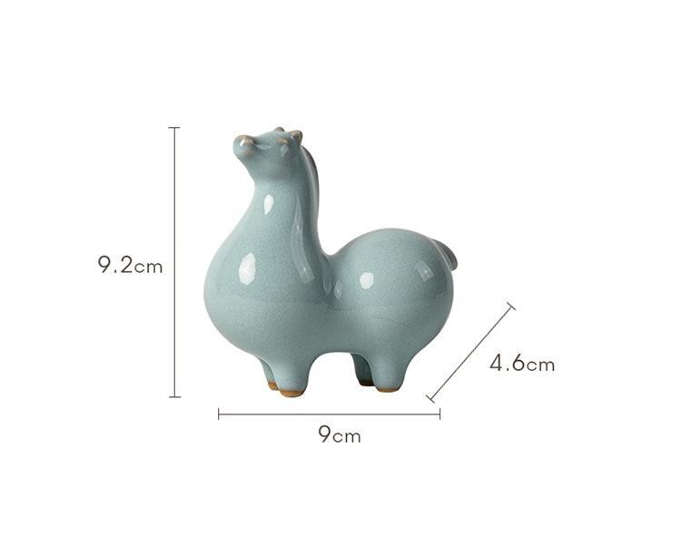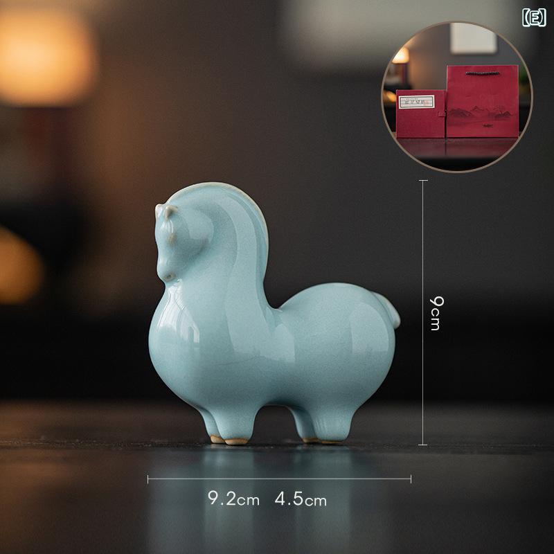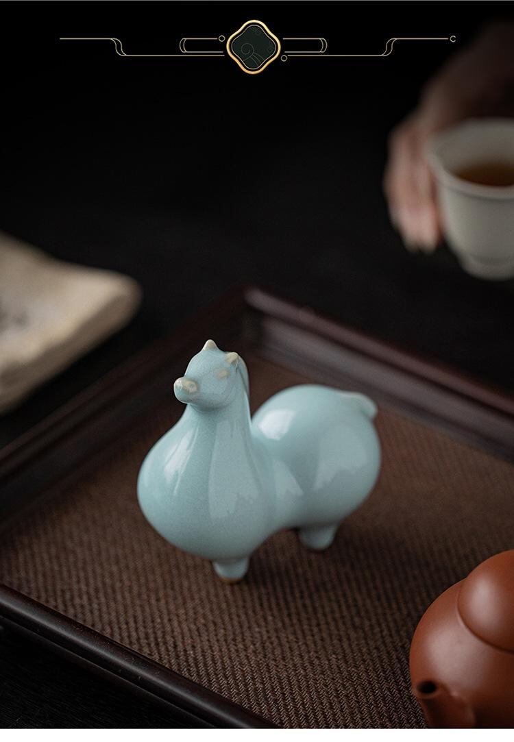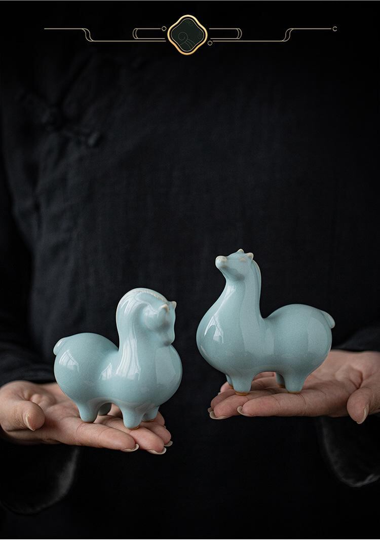 置物 小型 唐馬 汝窯 貫入 陶器 陶磁器 工芸品 中国風 リビング 玄関 オフィス 書斎 デスク 卓上 インテリア 装飾品 オブジェ 美術品 高級感 縁起物 ユニーク
