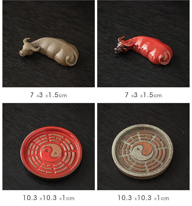 置物 茶道小物 牛 陶器製 小型 開運 縁起物 ユニーク 個性的 茶卓 茶盤飾り インテリア オブジェ デスク用 書斎飾り 中華風 赤色 アンティーク調 レトロ ミニチュア ティーセレモニー用 茶道具 アクセサリー