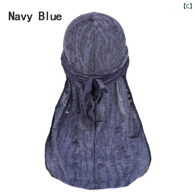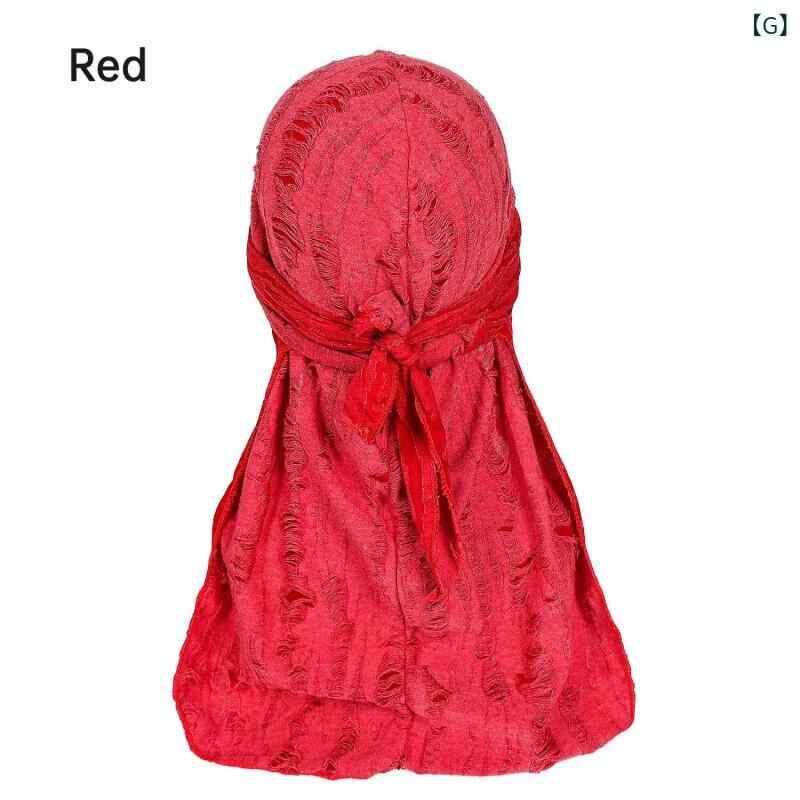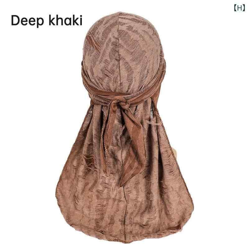 ドゥーラグ メンズ 男性用 ダメージ加工 フェザー柄 ロングテール ストリート ヒップホップ パンク 個性的 インフルエンサー バンダナキャップ 伸縮性 弾力性 ポリエステル 速乾 紫外線対策 通気性 防風