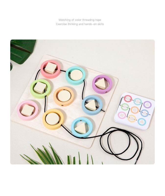 知育玩具 キッズ 木製 紐通し 積み木 パズル 図形 指先訓練 微細運動 発達 幼児教育 教材 4歳 5歳 6歳 就学前学習 集中力アップ 手先の器用さ