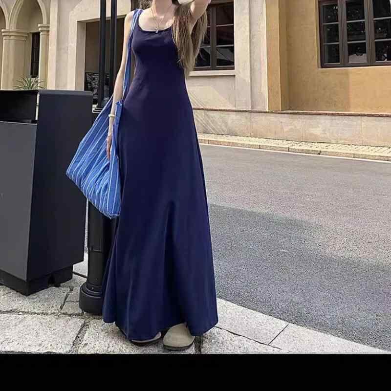 ワンピース レディース ミントグリーン 接触冷感 無地 ロング丈 キャミソール ノースリーブ セクシー 韓国風 ウエストマーク Aライン ハイウエスト ゆったり 上品 マキシ丈