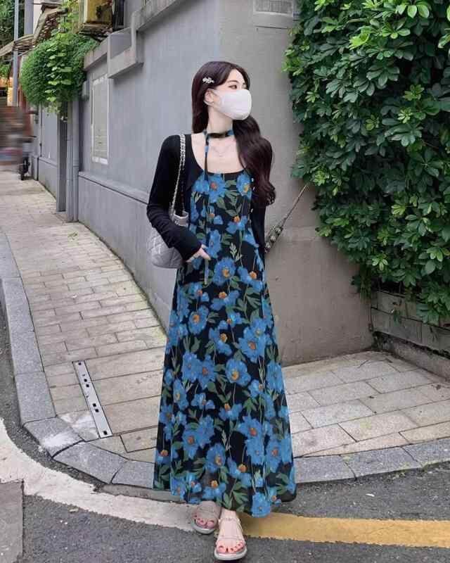 ワンピース 大きいサイズ レディース 花柄 キャミソール ロング丈 体型カバー Aライン スクエアネック エレガント きれいめ ビーチ リゾート 夏 セクシー 着痩せ ポリエステル素材