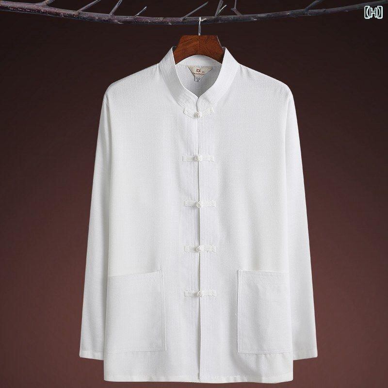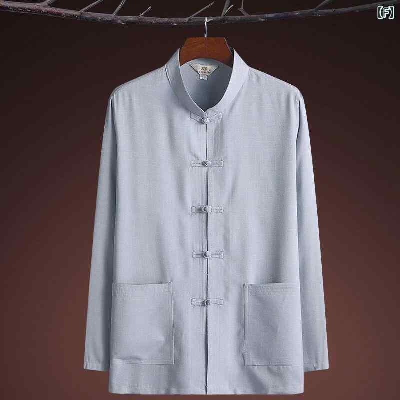 セットアップ メンズ 中高年向け 祖父 父 中華風 唐装風 長袖シャツ 薄手 通気性 夏用 ポリエステル混紡 カジュアル リラックスウェア 普段使い 形態安定