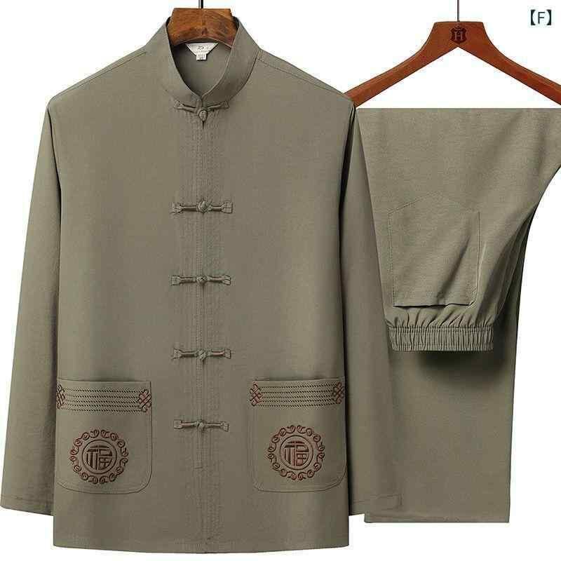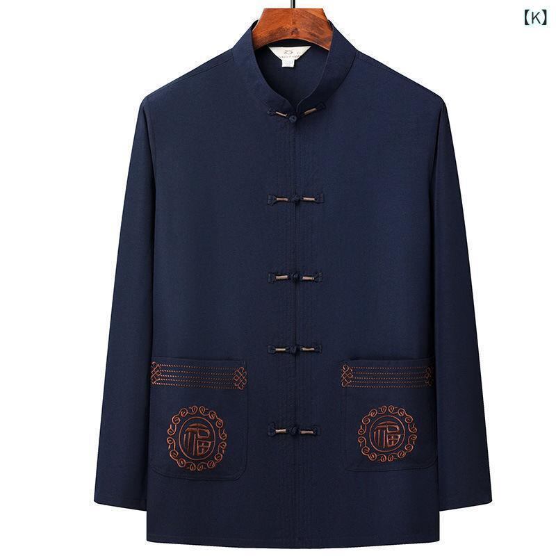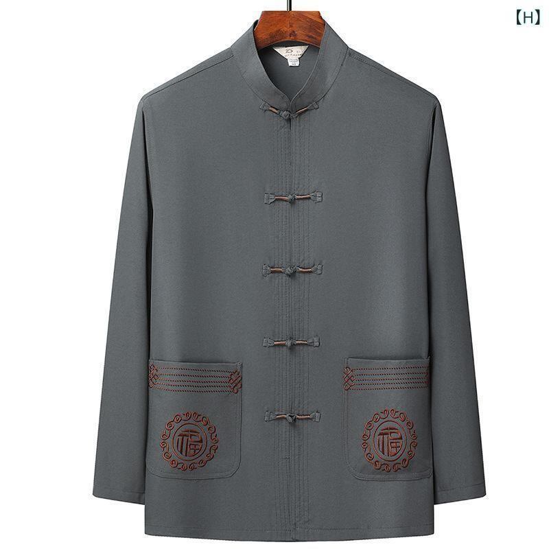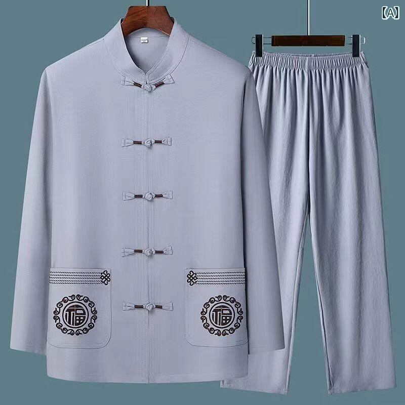 セットアップ メンズ 中高年向け 中華風 唐装 長袖 上下セット 薄手 接触冷感 ポリエステル 通気性 普段着 部屋着 カジュアル 夏 秋