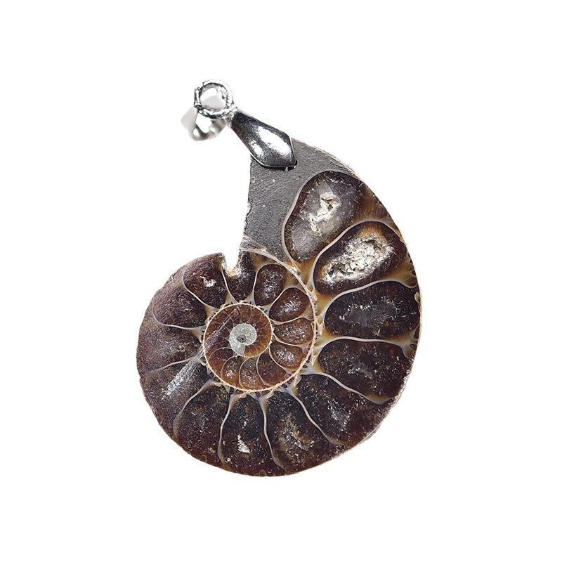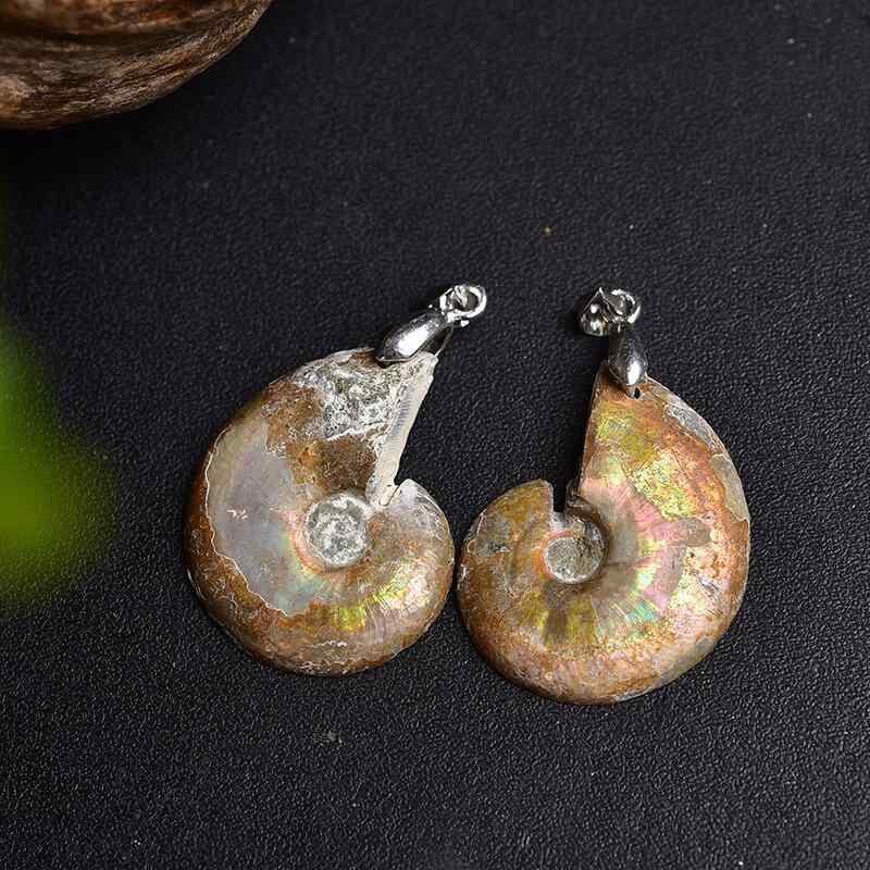ネックレス 男女兼用 天然巻貝化石 アンモナイト アンモライト スライス ペンダント 原石 鉱物標本 幾何学模様 モダン シンプル マルチカラー