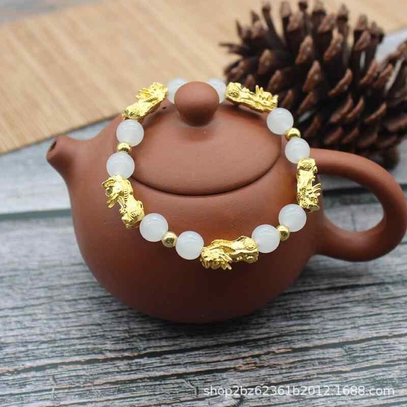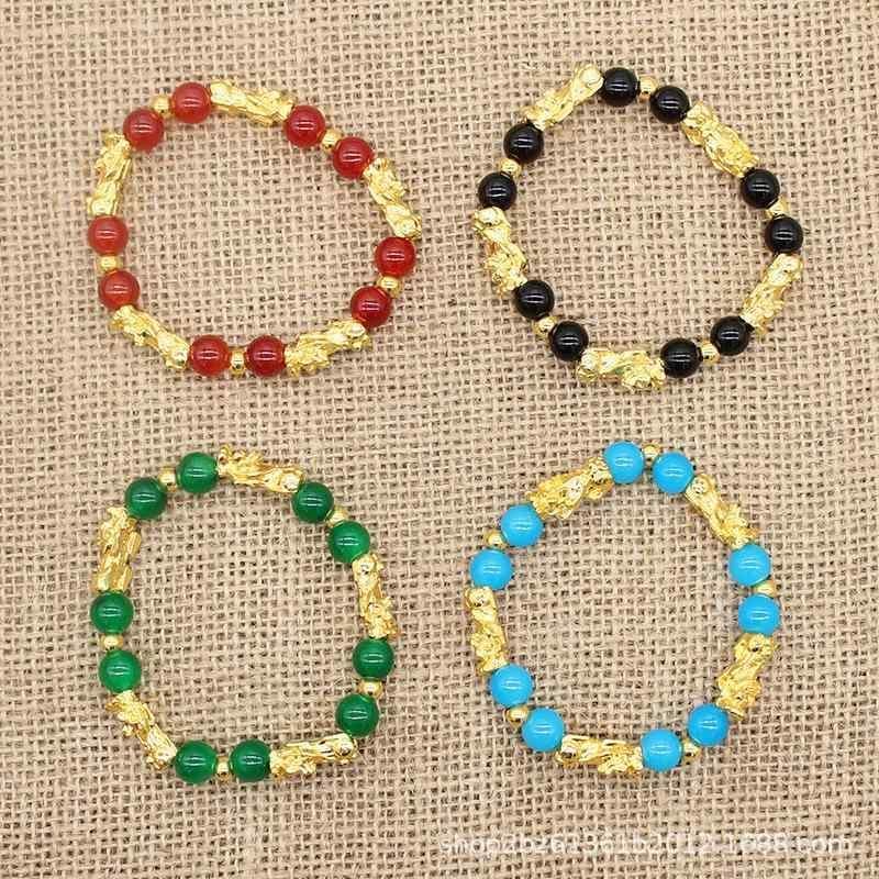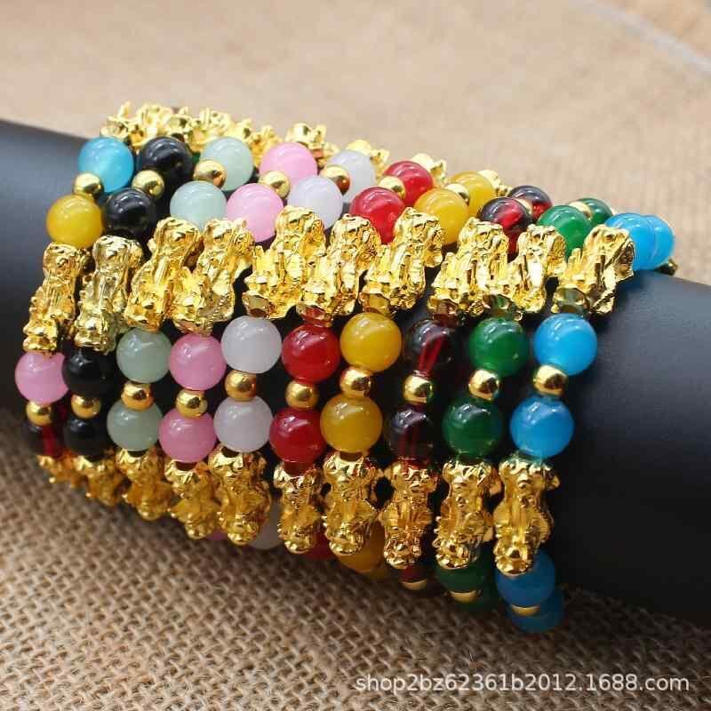 ブレスレット 男女兼用 貔貅 ひきゅう ベトナム砂金風 瑪瑙 めのお アゲート キャンディカラー エスニック風 金運 開運 財運 お守り ラッキーアイテム 合金製 メッキ加工 高級感 個性的 幾何学模様 マルチカラー ファッション