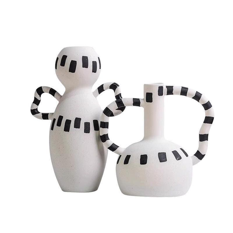 花瓶 モダン シンプル モノトーン ドット柄 樹脂製 置物 オブジェ インテリア リビング 玄関 テレビボード モデルルーム 店舗用 白 黒
