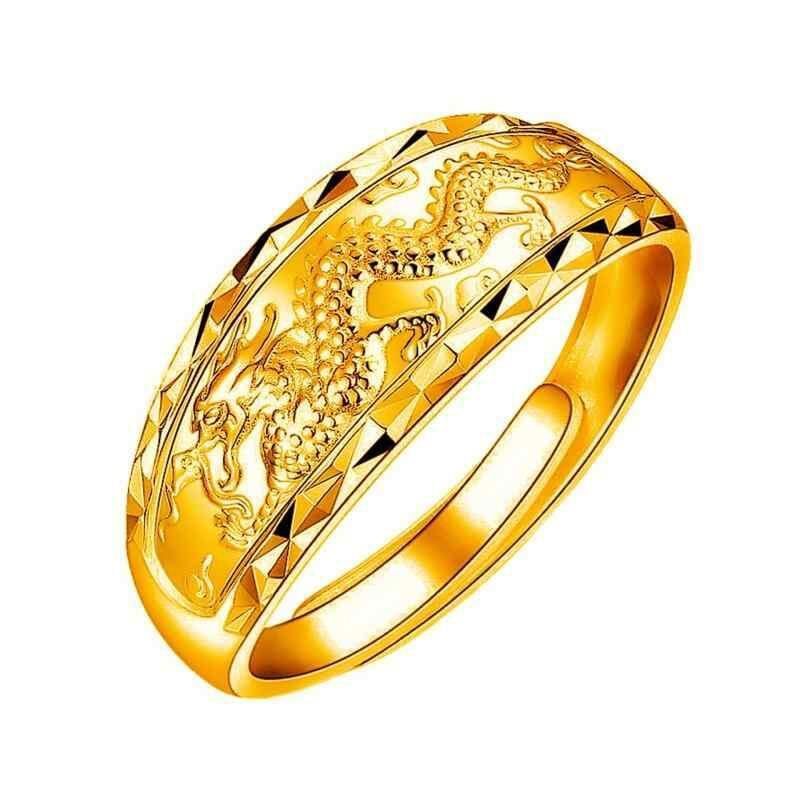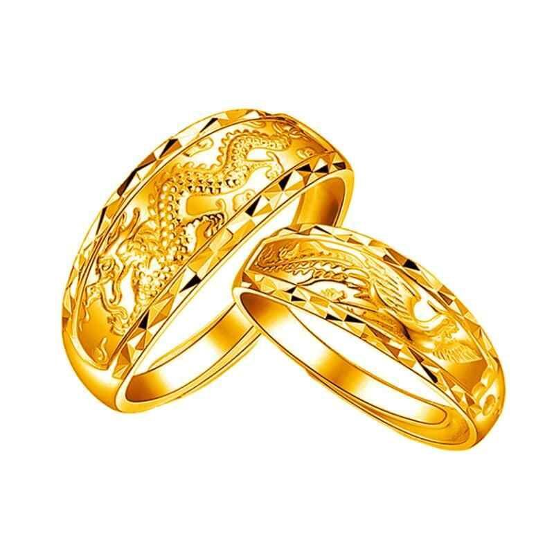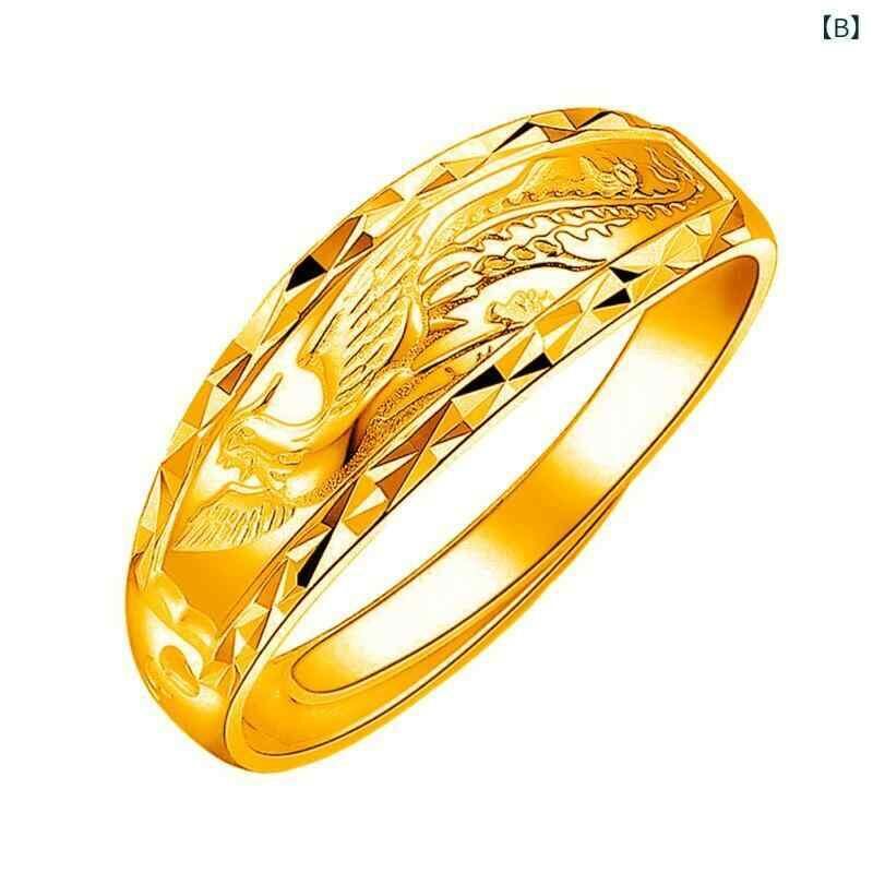 指輪 男女兼用 ユニセックス 真空金メッキ 銅製 龍と鳳凰 ペアリング ソリッド 結婚記念 ブライダル オープンリング サイズ調整可能