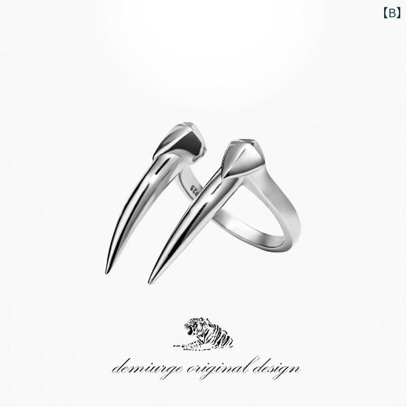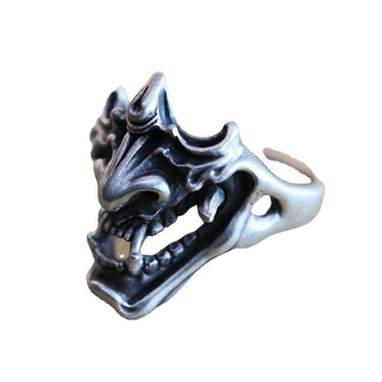 リング 指輪 男女兼用 獣牙 悪魔 スカル 髑髏 タイシルバー風 和風 マット加工 レトロ ヴィンテージ ゴシック パンク ロック 調節可能 合金製 アクセサリー