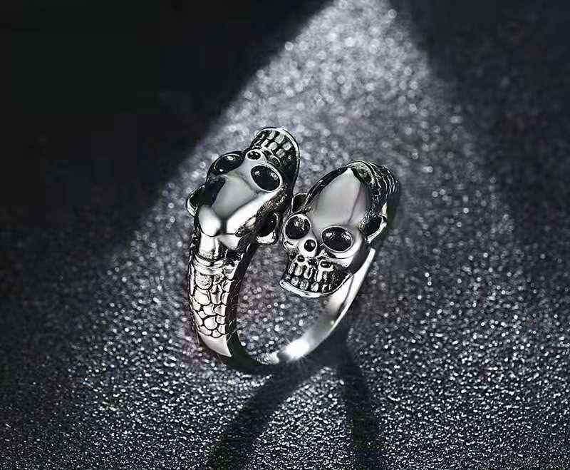 リング 男女兼用 スカル ステンレス オープンリング 欧米ヴィンテージ パンクスタイル ロックテイスト 個性派 ストリートファッション アンティークシルバー アンティークゴールド サイズ調整可能