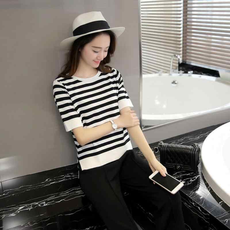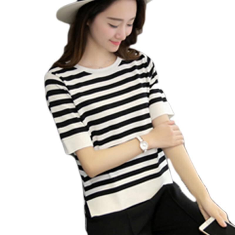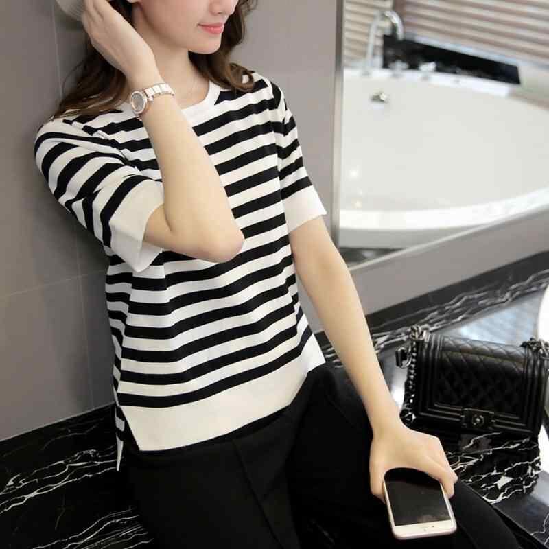Tシャツ レディース ゆったり 大きいサイズ 半袖 ストライプ柄 ボーダー柄 切り替え バイカラー クルーネック ラウンドネック スリット入り プルオーバー 再生繊維 ポリエステル混 快適カジュアル 通勤 オフィススタイル