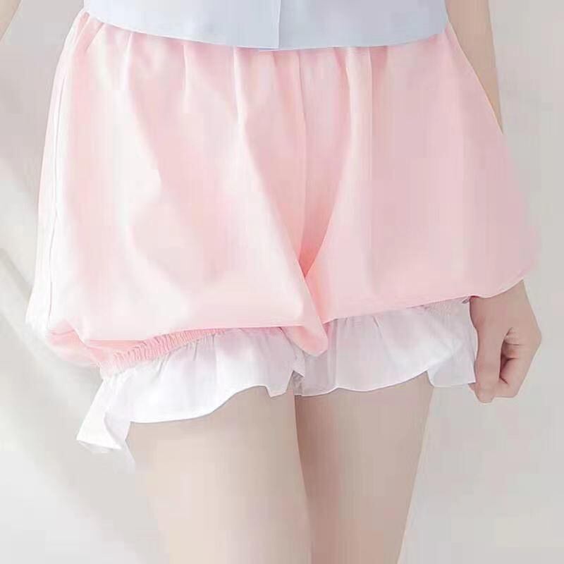 ペチパンツ レディース ロリータ風 かわいい 透け防止 接触冷感 速乾 ソフト インナーパンツ ドロワーズ 南瓜パンツ ショート丈 コスプレ ガーリー 定番カラー