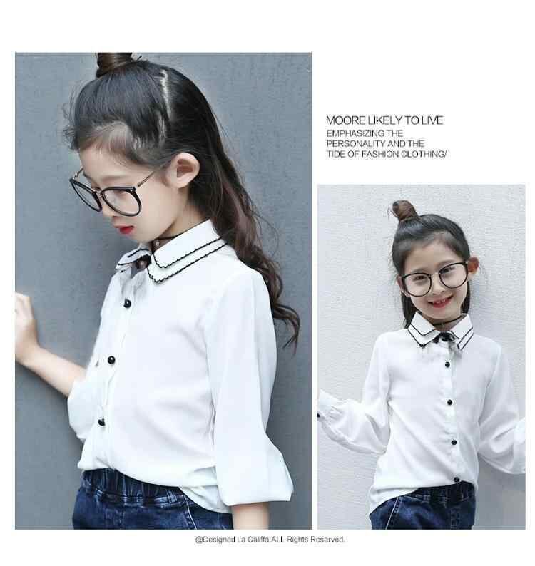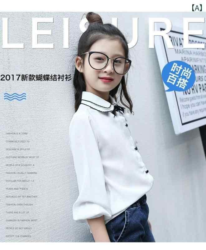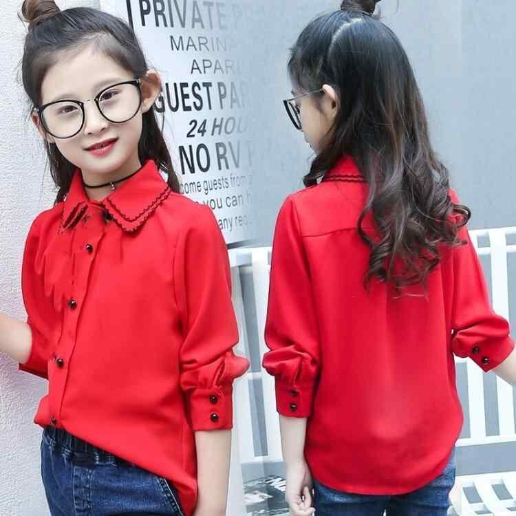 シャツ 女の子 小学生 ジュニア 長袖 フリル襟 シフォン ブラウス 薄手 柔らかな肌触り カジュアルトップス 無地 ホワイト レッド 春秋 通学 インナー