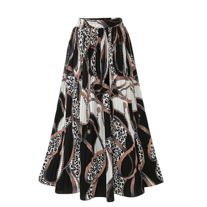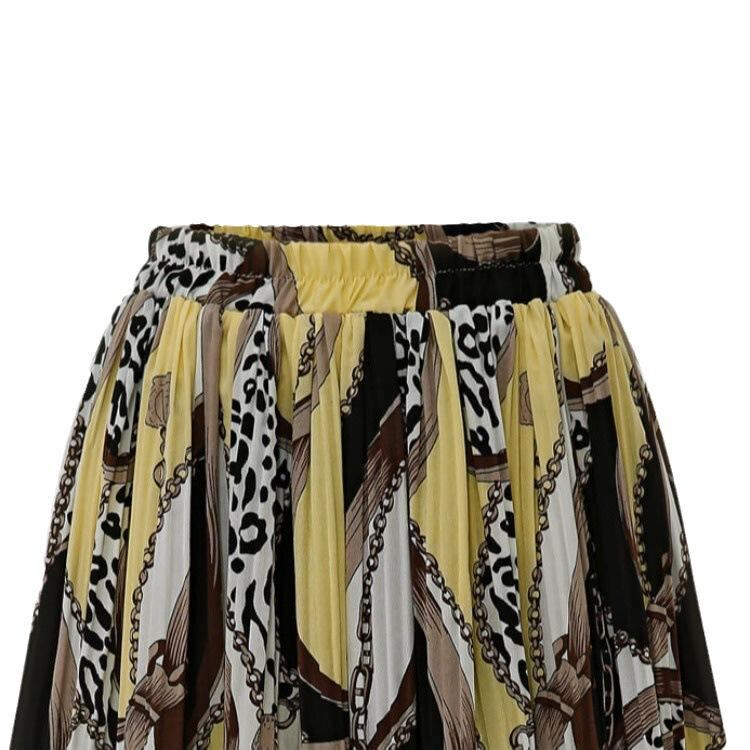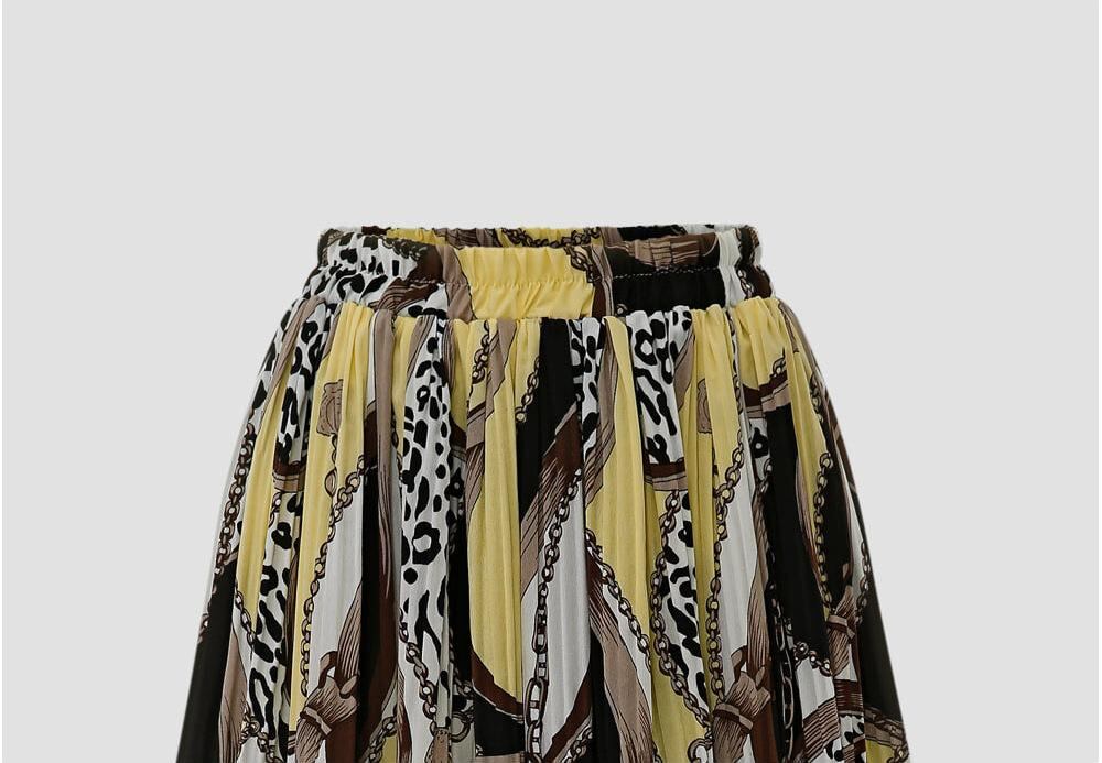 スカート レディース 大きいサイズ シフォン プリーツスカート ハイウエスト 花柄 ミモレ丈 Aライン フレア ポリエステル素材 通勤 オフィス カジュアル リラックス 快適 ブラック イエロー